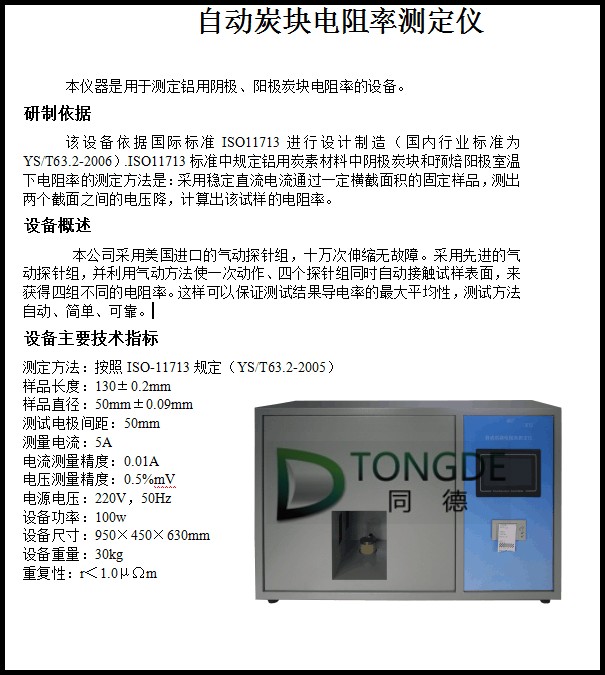 產(chǎn)品名稱:自動炭塊電阻率測定儀