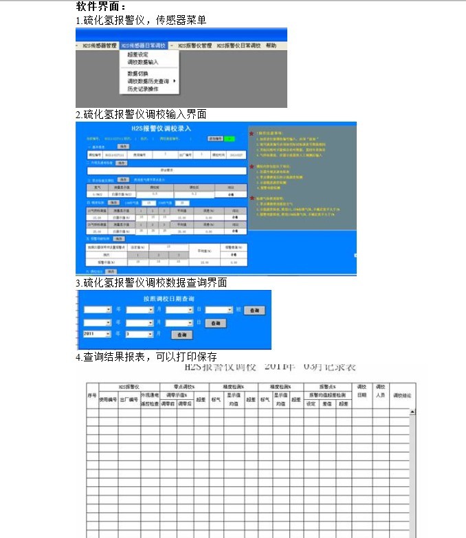 7.強大的軟件采集錄入管理功能,分為傳感器報警儀信息管理,日常調(diào)校,周期檢定等功能。可以根據(jù)不同傳感器,報警儀進行分類操作,**立數(shù)據(jù)庫,實現(xiàn)報表班次,日,月以及編號查詢,打印,保存。并設(shè)置有差設(shè)置,判斷等實用功能。操作簡單快捷,數(shù)據(jù)查詢快速,并能根據(jù)用戶要求定制輸出報表的格式以及報告的格式內(nèi)容,做到人性化界面。降低了操作的復(fù)雜性,強化了數(shù)據(jù)的查詢準確性和快速性