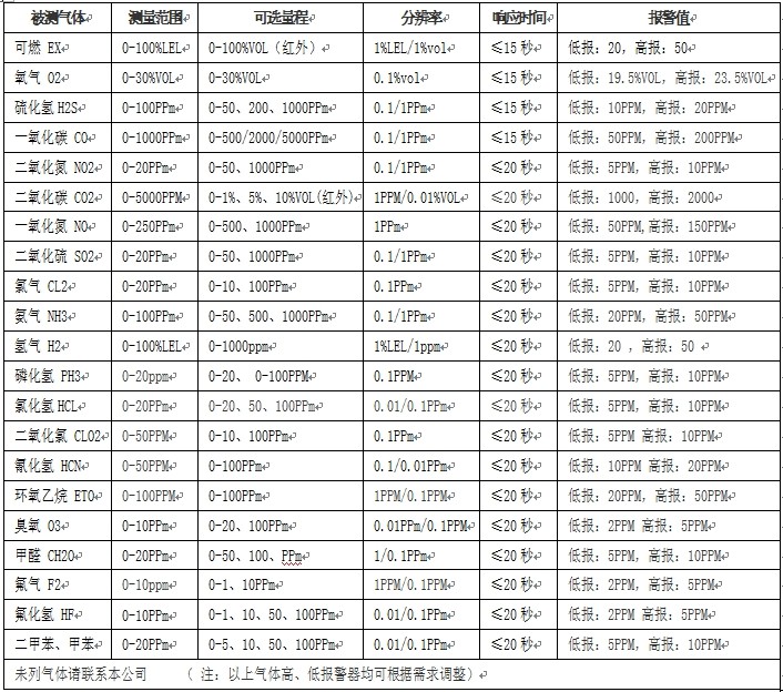 ●傳 感 器:氧氣及有毒氣體為電化學(xué)型,可燃?xì)怏w/催化式